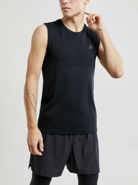 Leichtes, kühlendes und im Torso nahtlos verarbeitetes, ärmelloses Shirt mit ausgezeichnetem Temperaturmanagement während intensiver Aktivitäten.